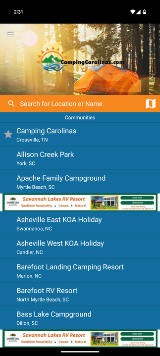 Dee Moore, Director of Marketing for two North Carolina campgrounds (Mama Gertie’s Hideaway Campground and The Great Outdoors RV Resort) stated, “I recognized the app’s potential to reach a larger array of campers. As soon as banner ad enhancements were available for purchase, I jumped at the chance to purchase ads for both parks.”